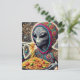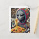 En utomjording som äter spaghetti i stil i ett blandat mediekollage, AI, genererade konst