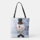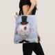 Den här tote-väskan har ett runt jolly snögubbe, komplett med top hat, scarf och morotnäsa. Perfekt för julshopping eller julklappar.