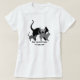 Cute t-shirt med silhouettes av katt och ordalydelsen "Man kan aldrig ha för många katter" i svart och grått-toner.