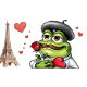 Överraska din Valentine med en förtjusande Fransk som vet hur man vinner ditt hjärta! Med en ro i handen och Eiffel Torn i bakgrunden kommer denna tecknad groda säkert att roa och charma alla! Perfekt till dem som vill lägga till en roligt och romantik för Alla hjärtans dag!