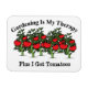 Tomater är en basvara för de flesta trädgårdsmästare och ingen av oss kan vänta på de där juicerröda frukterna. Roligtens grafiska utformning med en rad tomatplantor omgivna av text är Min terapi plus Tomater