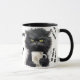 Arg Cat Holding Coffee Kopp Stänk Sublication Design. Märkning: "Håll käften!", "Gå iväg!", "Var tysta!"!