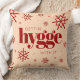 Lägg till en festlig, rolig beröring till årsslutet och julhelgen i firande med det här vismska dekorativ kudde, som har den ljusa, skarpa känslan "Gettin'Hygge with It" på en persikobakgrund som sprinklats med snöflingor. Omvänd visar identisk design. Design © W.H. Sim. Se mer på zazzle.com/expressionsoccasions