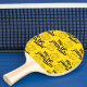 Skaffa ett kryp vid domstolen med den här lilla tennispaddeln från bord, som har en upprepande mönster av pun "vi ska jammin", som är märkt med en söt leende miniatyr som klandrar burk på en ljusstark gult. Omvänd visar identisk design. Layout, teckning och Design © W.H. Sim. Se mer på zazzle.com/wordsofwhimsy