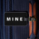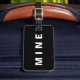 Lustigt svart och rött bagagemärke med "Min" skriven på det