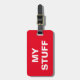 Lustigt rött bagagemärke med "Min Saker" skrivet på det