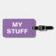Lustigt lila bagagemärke med 'Mitt Saker' skrivet på det