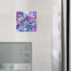 En lustig liten fågel i det övre lämnat hörnet och blommigt inslag i rosa, lila och turkos.