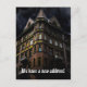 Lustigt byte av adress med hemsökt hus meddelande vykort