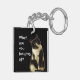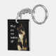Svart och vit katt med attitydslogan "Vad tittar du på" på akrylnyckelkedjan.