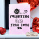 Typografi utformar Valentinkortet med rolig ordalydelse, dekorerat med kärlek hjärtan. Kortet säger "Du är min Valentine, men min äkta kärlek är Chocolate med slå linan på insidan."