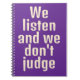 Lustigt citattecken för bärbar dator. Vi lyssnar och vi dömer inte.