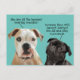 Dessa två hundar (en amerikansk Bulldog och en Black Pug) diskuterar varför alla människor bär munstycken (även kallad masker). Deras svar? Det måste bero på att människor inte har lärt sig sitt sätt att sitta och stanna än. Lustigt kort som ger ett leende till alla som har haft masken och skydd i ställe under pandemin. All text och färg i bakgrunden är anpassade.