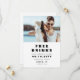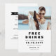 Ett modernt och lustigt "FREE DRINKS OCH A BRÖLLOP ON THE SIDE"-fotokort för att knäcka dina gäster på bröllop spara datum. Utformningen har modern typografi i vit bakgrund. På kortets baksida har utformningen större anpassade. Anpassa designen genom att ersätta exempeltexten och fotot.