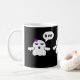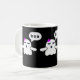 Lustigt färgat boo med ogillande flicka kaffemugg
