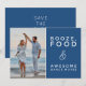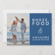 Ange tonen för ett roligt-fyllt firande med vårt fantastiska Photo Beach Wedding Save the Date. Detta kort har en livlig fotodesign på framsidan och det lekande budskapet "Sprit, mat och dålig dans rör sig" är perfekt för par som vill lägga till en liten bit humor i sina meddelanden från bröllop. Baksidan är anpassad med alla dina bröllop-detaljer, så att dina gäster märker sina kalendrar för ett minnesvärt badbröllop. Perfekt för att bjuda in dina kära att gå med i skratten, kärlek och festligheter!