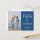 Spara datumvykorten i en roligt för paret som inte kan vänta med att fira med sin familj och sina vänner. Blå och vit typografi med ditt foto som lyder: Sprit, mat och fantastisk dansar. Anpassa vykortets framsida med fotot, namn och bröllop. Lägg till din returadress och ytterligare bröllop-detaljer på vykortets baksida.