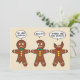 Lustiga pepparkaksgubbar i parodi, spoof, till kaninkanterna som säger "Min rumpa ontr". De här tre lustiga pepparkaksgubbarna kakor med tal bubblor. Den första pepparkaksgubben har en bita på benet och han säger: "Min fru Ontr!", den andra har en bita på örat och säger: "Vad?", den tredje ögonen har äts och han säger: "Var är ni?". Särskilt roligt för julens Julhelg. Tecknad för tyst Pepparkaksgubbe. Baksidan säger att det är bra. Jag är bra. Allt är bra. Söt Önskemål för Helgdagarna. Redo att vara personlig med din familjs efternamn eller eventuella efternamn. Underbart efter det svåra år vi har haft 2020 med coronavirus/COVID-19 Pandemi.