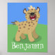 Den här söta hyenan är fullt av skratt! Ritad i en söt illustration av tecknaden stil på en grönt grasslig bakgrund. Safari!