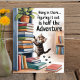 Den här fina men inspirerande kattdesignen poster en vattenfärgsbild av en kattunge som försöker klättra upp i en bokhylla. Ordspråket: "Vänta där.." Att ta fram det är halva äventyr" som står högst upp på den poster utformningen. Denna utformning är perfekt för alla som kärlek katter, men den har också ett mysigt bok-älskare-tema.