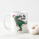 En lustig vinterdesign av söt T-rex-dinosaur som är snurrig i ljus, som säger: "Rex the Halls"