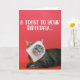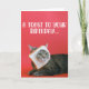 Lustigt katt med toast som födelsekort för kattälskare i ditt liv. Det här söta hälsningskortet är ett perfekt sätt att önska Grattis på födelsedagen till en vän, medarbetare, familjemedlem eller en speciell person.