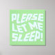 Spelande kanvastryck med den feta frasen "LÅT MIG SLEEP!" i stort, vitt, vågigt text med färgstarka konturer, som ställs in mot en livfull grönt. Det humoristiska budskapet genljuder hos alla som behöver vila. Perfekt för vuxnor, barn, högskola studenter, föräldrar, mor- och farföräldrar, lärare och sömn älskare som uppskattar en lätt beröring. Perfekt för att kunna lägga till en roligt, relativ vib till vardagsbehov, hemdekanter eller tillbehör. Denna fräcka utformning firar den universella kärlek för sömn och avslappning. Anpassa det här biet om du vill ha ett djärvt, sömnig påstående till alla lägen med öga som fångar, viskare stil. ©️ Rosemarie Guieb