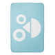ansikte byggt med en halv cirkel, två olika storleka cirklar med hål i mitten för ögon och en triangel för näsan. Finns i flera färg. Roligtens för barn badrum.