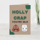 Det är roligt att ha underbart kort för manar eller kvinnor. Fira med vänner eller älskling i sin födelsedag med lite klassisk "svart humor" humor. Kortet har en leende poop och en papper illustration med "heliga skit, du är gammal" i återutskriften. Anpassa det inre meddelandet — grattis på födelsedagen."