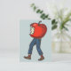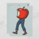 En rödäppelman med byxor lustig, konstnärlig, vismisk och lekfull vykort med dammig grönt bakgrund. Inskriptionen på baksidan kan ändras till en egen text eller tas bort helt. På baksidan finns också en liten figur i svartvitt....................................................................................................................................................................................................................................................