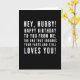 Lustigt sarkastiskt födelsedag önskemål för make. Klassy och till punkten svartvit typografi, "Hej, hubby! Grattis på födelsedagen till dig från mig - den som uthärdar dina biljetter och fortfarande kärlek dig!" med XOXO på baksidan för att förbättra affären:) Som hur jag rullar? Kolla in andra design och illustrationer i min butik:)