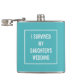 Den lustiga kolven kommer definitivt att uppskattas av budens mamma gången som bröllop är över! En chic, turkos färg har en vit kvadrat ram med texten i mitten. Du kan ändra färg och till och med ord genom att klicka på "anpassa det".