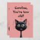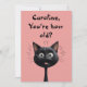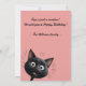 Ett födelsedagskort med en illustration av en mycket förvånad svart katt på rosa. Helt redigerbar text framtill och baktill. Skapa ditt personliga födelsedagskort.