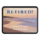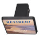 Är du pensionerad? Berätta för alla med det vackra solnedgången. Anpassa med vilken rolig information du kan drömma upp och till och med fotot. Vit och blå text.