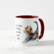 Det här söta kaffet mugg har två bilder av tabbar från rand kattungar. Den bruna texten mellan bilder säger "Låt oss dricka COFFEE och tala om CATS". Perfekt till vilken kattälskare som helst!