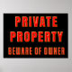 Lustigt PRIVATE EGENDOM BEWARE OF OWNER Warning Poster