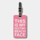 Lönsam resande märkre med en rosa bakgrund som kan ändras till vilken färg som helst, det humoristiska ordspråket "DENNA ÄR MY RESTING BEACH ANSIKTE" och dina personliger på baksidan.