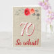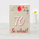 Lustigt Rustic 70, så vilket 70:e Blommigtens födelsedagskort. Rustik blommigt 70:e födelsedagskort med vackra vattenfärgsfärgade rosor och kvistar på en beige rustik bakgrund. Det roliga och inspirerande citatet 70 Så vad är underbarare för en person som firar 70 år och har en känsla av humor. Underbarare 70-årsdagspresent.