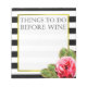 Gör dina triviala uppgifter lite mer roligt med det roliga anteckningsblocket för kvinnor som säger "Sak att göra före vin". Använda det för att du slår ihop din episka idé medan du planerar bröllop eller födelsedagen, eller använda det för att hoppa av de shoppingartiklar du glömde första gången, eller använda det som en lista att göra. Möjligheterna är oändliga. Utformningen har en guld ram och en rosa vattenfärg ro och löv på en svart och vit strimlad bakgrund.