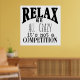 Poster med svart text på vit bakgrund. Texten säger: "Slappna av, vi är alla galna. Det är ingen tävling." Underbart för sovrum, sovrum eller till och med ditt kontor. Kontakta oss för matchande produkter.