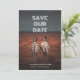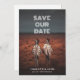 En lustig unik berättelse på ett sparat datumkort med ett vild djurpartema, med en unik dekorativ typrubrik och data. Annan text på baksidan. Byt bara ut det här platshållarfotot mot ett eget humorfoto på ett djurpar. Ersätt den här provplatshållaren med ett eget unikt foto.
