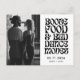 De här sparar datumkorten för det roligt-vänliga paret som inte kan vänta med att fira med sin familj och sina vänner. Svart och vit reflektortypografi med ditt foto som lyder: Sprit, mat och dålig dans rör sig. Anpassa vykortets framsida med fotot, namn och bröllop.. Lägg till din returadress och ytterligare bröllop-detaljer på vykortets baksida. Kontakta mig genom min butik om du behöver ytterligare anpassning eller hjälp med fotot. Jag vill hjälpa kärlek.