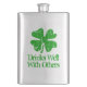 Lustigt St patrick's day dricker kolv för Irish party. Vintagens grönt schamponerar med anpassningsbarnas text. Distressad fyrklövrare med grungande bokstäver. Lägg till ditt eget namn eller humoristiska citat. Metallisk kolvpresent.