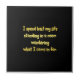 Gulten förmedlar ett humoristiskt budskap om glömska, som ställs mot en svart bakgrund. Citatet återspeglar den vanliga erfarenheten av att gå in i ett rum och glömma syftet.
