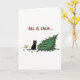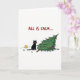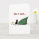 Lustigt svart katt som knackar över Julgran Kort
