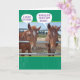 Ett par hästar som hänger ut vid stallet. Man säger: "Jag skriker. Du skriker." Den andra hästen säger: "Vi skulle båda skrika "Grattis på födelsedagen"...Men vi är för slarviga. Hämta den? För häst!" Lustigt födelsedagskort för hästälskare och fånig pun älskare.