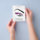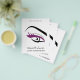 Enkelt, minimalistiskt teckning i ett kvinnligt öga med långa ögonfransar och ögonfransar i svart och lila. Perfekt för din företagsbefordran. Lämplig för konstnärer, lashtillägg, skönhetare, stilister, spa salon, hår och skönhetssalon eller modellagenturer. Anpassade.