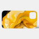 Fin gult och svart telefonfodral. Fodral är abstrakt med svarta och vita nyanser av gult.