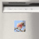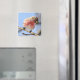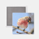 Fyrkantig magnet med foto av Common Redpoll-fågel som lutar hans huvud.