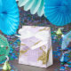 Anpassad design med en alkoholhaltig bläck-abstrakt i skuggor från mjuk lavender till lilak lila med glittrande guld-accenter är perfekt för ett romantiskt och elegant bröllop tema. Den koordinerande förmånslådan mellan tält och stil som visas här innehåller en mall som gör det enkelt att lägga till initialer, bröllop-datum och tack för meddelandet. Sök i ID990 om du vill se andra delar i den samordnade bröllop-uppsättningen.
